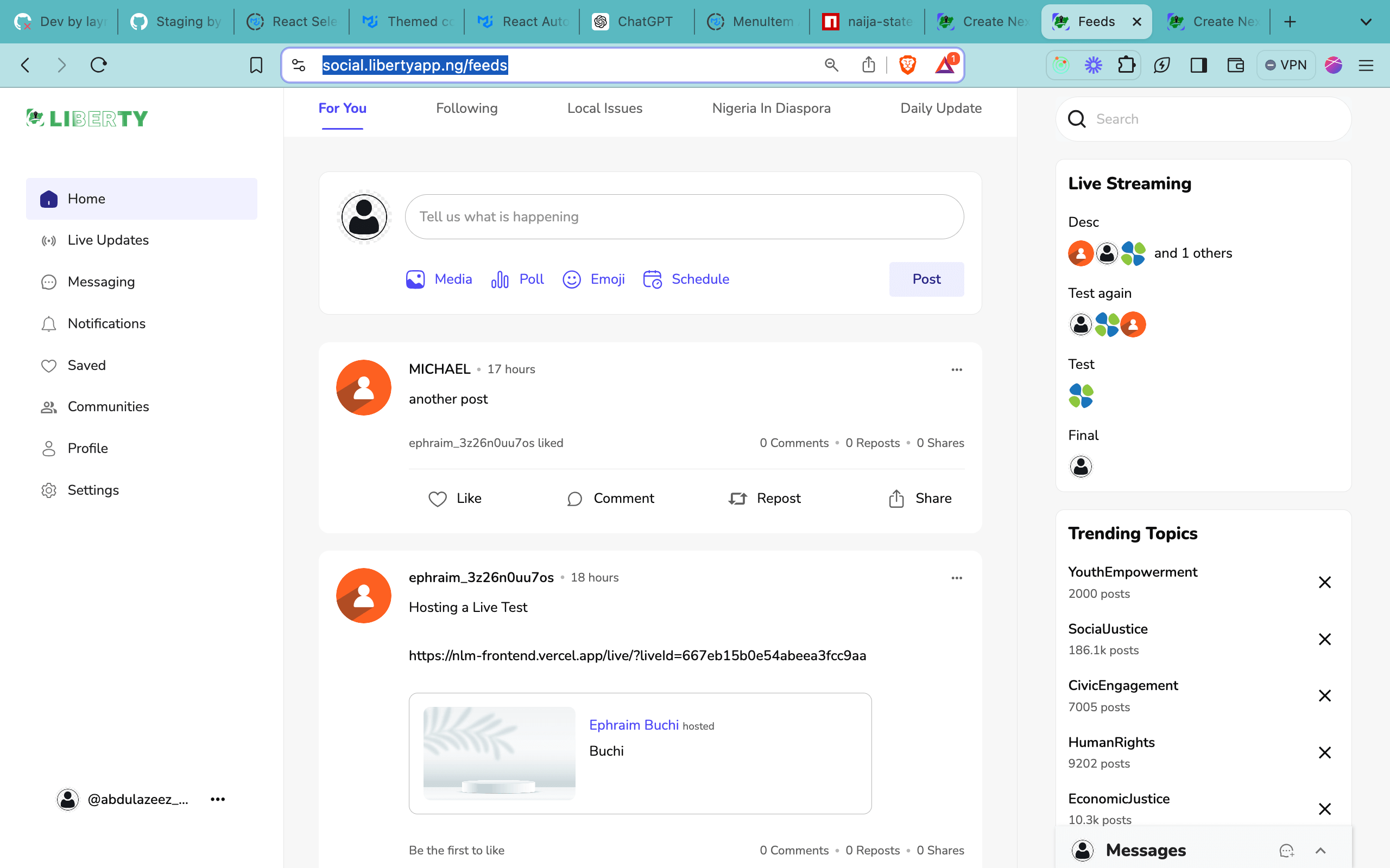 With 4 years of experience as a frontend engineer, I specialize in creating web and mobile applications using React, Next.js, React Native, Vue.js, Nuxt.js, and Flutter. At Thillers Travel, I spearheaded the development of a high-traffic web app for flight booking and hotel reservations, driving significant user growth. Recently, I developed social media platform featuring robust livestreaming capabilities, and allowing users to engage in interactive meetings seamlessly.